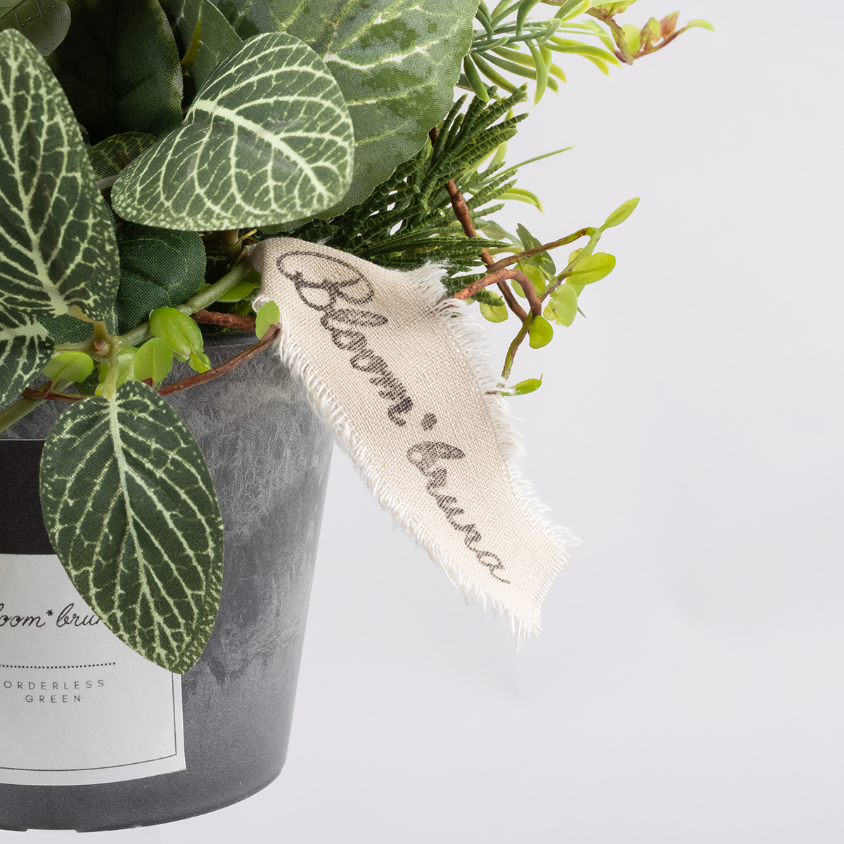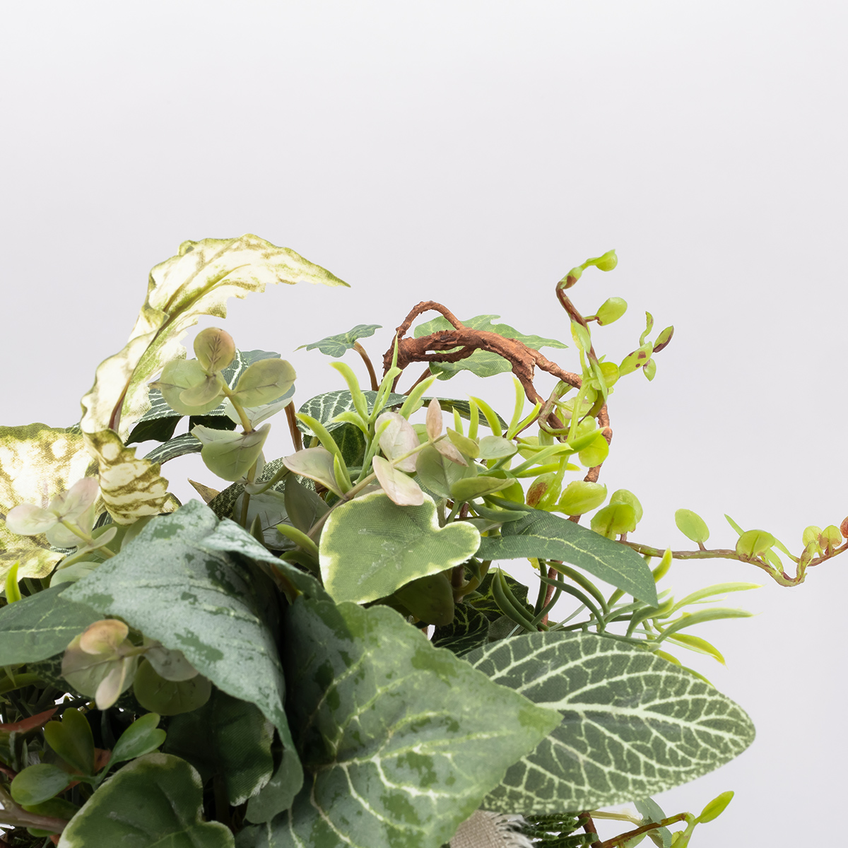 ミックスされたグリーンの重なりと、シャープな枝のラインが印象的なアーティフィシャルグリーン。ナチュラルすぎず、モダンな印象で空間をセンスよく彩ります。