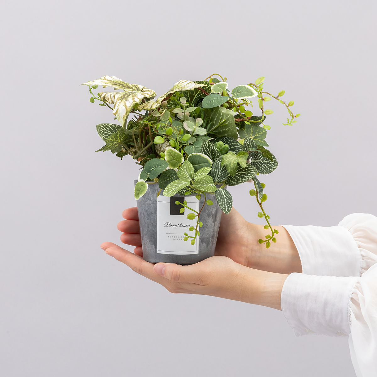 どの角度から見ても美しく、住まいやオフィスのアクセントに最適。市販の鉢に入れて飾ることで、より空間に馴染むスタイルに仕上がります。