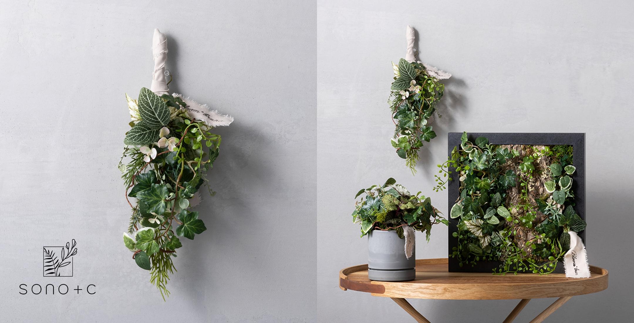 Bloom*brunaの江尻チハル氏とアルメタックスが手がけるグリーンライフブランド「SONO+C(ソノック)」から、アーティスティックなスワッグが登場。
